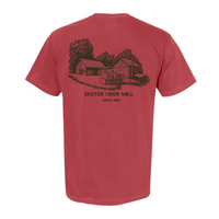 Our classic heavyweight pocket tee is built for comfort and everyday wear with a timeless unisex fit. In red, this tee features the iconic Dexter Cider Mill logo on the front pocket and a detailed sketch of the historic cider mill building on the back.